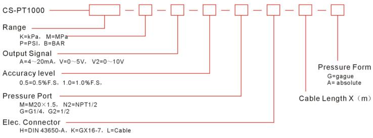CS-PT1000 Series Pressure Transmitter Type Selection Guide